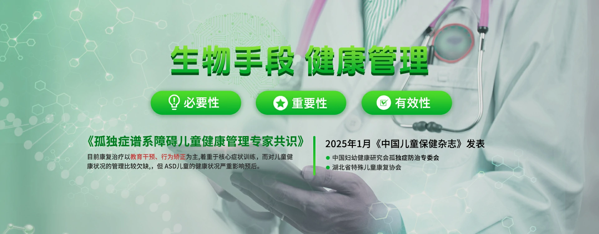 生物干预是以生物钟矫正、睡眠技术、特殊饮食、精准营养、功能益生菌、神经调控、体质调理、肠道5R、大脑修复、行为矫正、生活方式、心理健康、家庭教育、AI技术为主要手段的干预方法。其以非侵入、非强迫、非药物、无痛苦、简单方便、家庭实施为特点,具有较高的便捷性、舒适性、安全性、依从性和可操作性,从而带来其他干预手段难以到达的健康效益。其中在自闭症方面,经过多年的临床和实践,生物干预被越来越多的医疗机构和家长所认知、接受和推广。2025年1月《中国儿童保健杂志》发表由中山大学公共卫生学院、上海交通大学医学院附属新华医院、国家卫生健康委妇幼健康中心等多家机构的12位专家制定的《孤独症谱系障碍儿童健康管理专家共识》,其中就强调生物手段、健康管理的必要性、重要性和有效性。