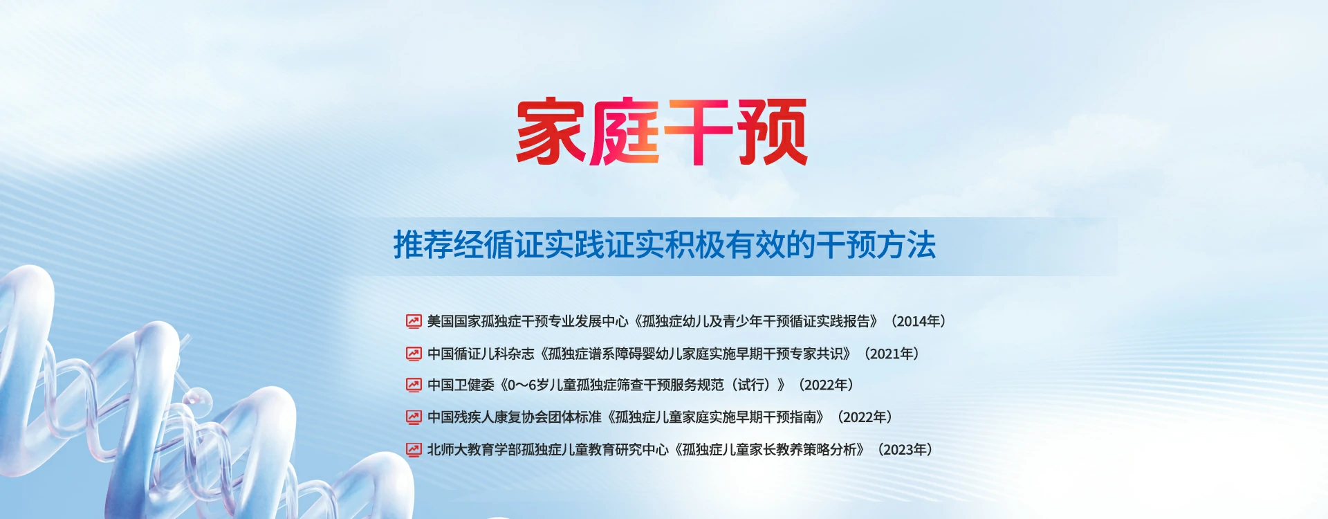 自闭症的家庭干预是指在自闭症儿童(或患者)的家庭环境中,由家长或其他家庭成员主导实施的一系列旨在帮助自闭症患者改善症状、提升能力、促进其更好地融入生活的干预措施。国家卫健委2022年《0~6岁儿童孤独症筛查干预服务规范(试行)》、中国残疾人康复协会2022年团体标准《孤独症儿童家庭实施早期干预指南》、国家级期刊2021年《孤独症谱系障碍婴幼儿家庭实施早期干预专家共识》、北师大教育学部孤独症儿童教育研究中心2023年《孤独症儿童家长教养策略分析》均强调“家庭干预”的重要性,应成为第一选择。